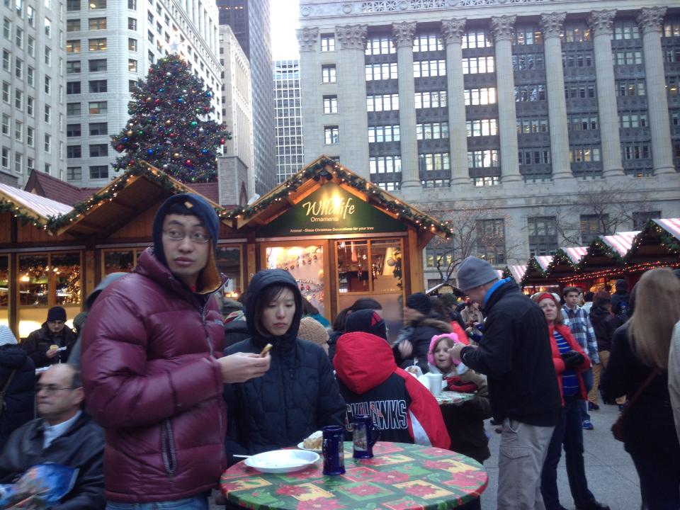 I wandered the stalls for a while enjoying the break from sightseeing. I stood and watched a guy play Christmas tunes on a saxophone for ten minutes. A Chicagoan came up next to me while I was watching the saxophonist. We struck up a conversation and talked about what we enjoyed in Chicago. Suddenly...